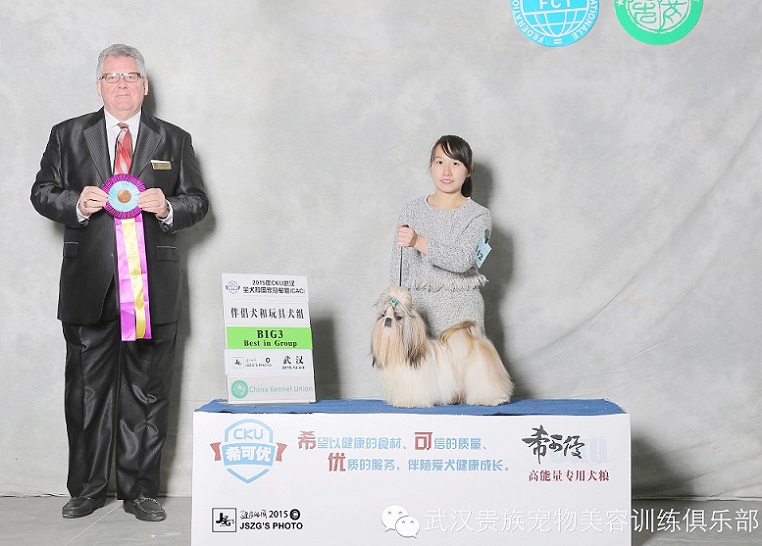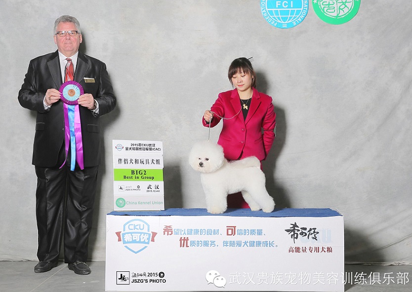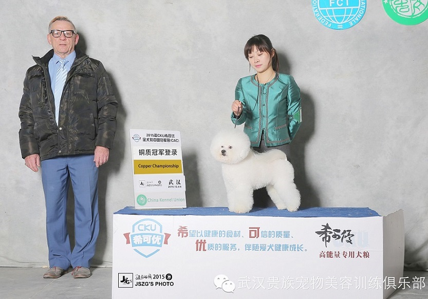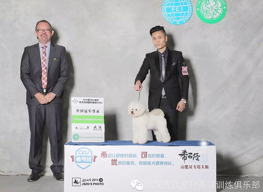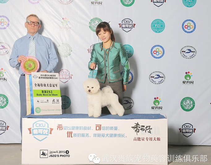 有本土優(yōu)勢的武漢貴族寵物這次安排了比熊:帥哥Hot Summer,美女Nat及小戰(zhàn)將Foreman,美國可卡Sky,西施:Sun參賽。帥哥Hot Summer是最先傳來好消息的,率先以優(yōu)異的成績完成登錄冠軍。