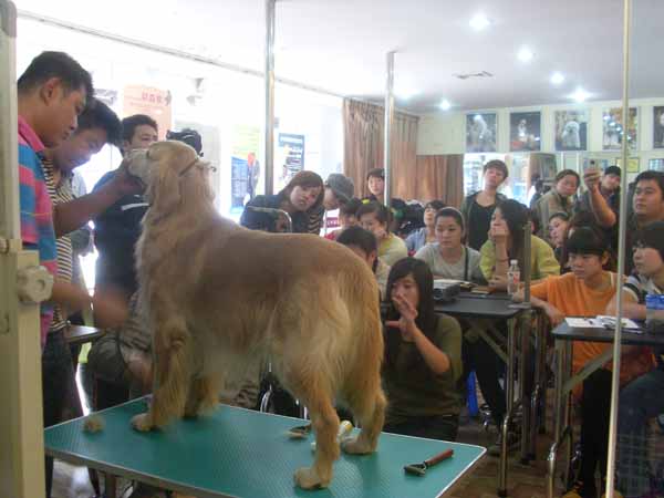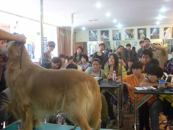 威廉大師在犬展期間蒞臨我校,專門為學(xué)員們上了堂金毛美容課