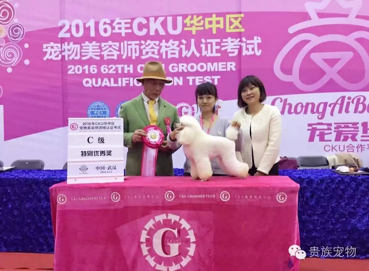 武漢貴族寵物美容培訓學校優秀學員游敏同學榮獲2016年CKU美容認證考試C級特別優秀獎