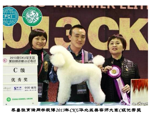 武漢貴族寵物美容培訓學校優秀學員張育滿同學榮獲CKU美容認證考試C級優秀獎