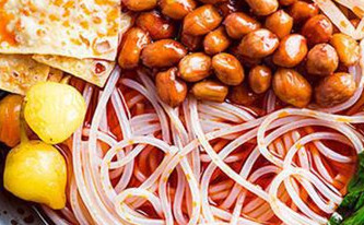 桂林米粉在米粉界得天獨(dú)厚的“霸主”地位。而桂林米粉的原主義吃法其實(shí)是干撈制法,澆頭也遠(yuǎn)沒(méi)有肥腸、排骨、魚丸這么花哨,常見(jiàn)的反而是鍋燒、脆皮、炸黃豆干拌,一齊混上就算大功告成。可謂人間有味是清歡。